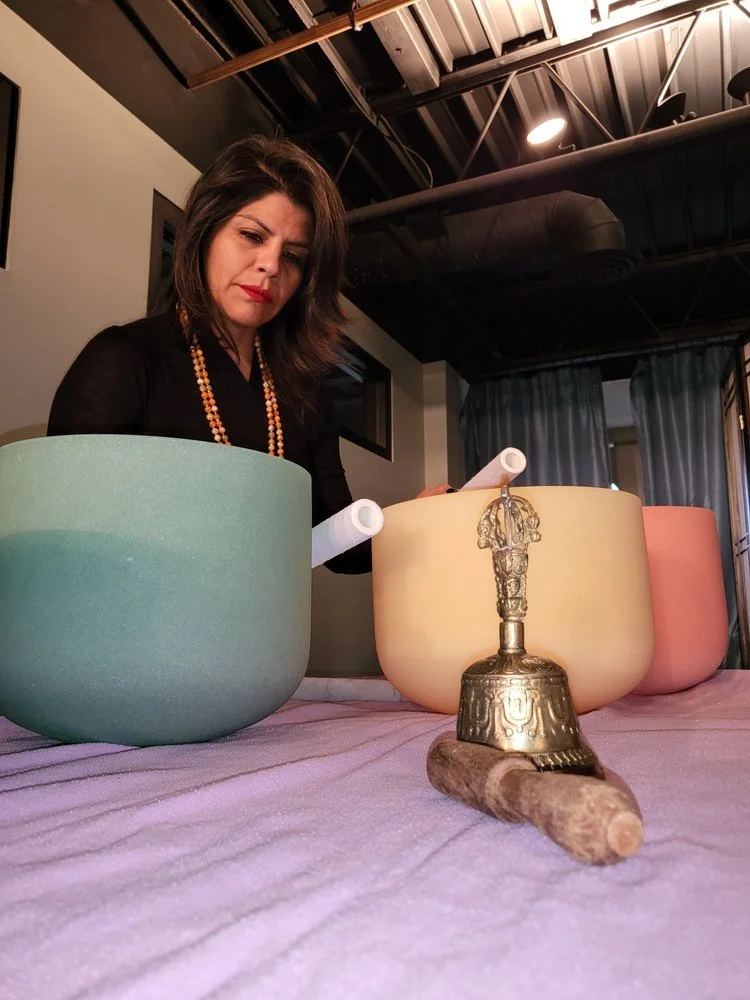 Jatziry uses Crystal and Metal singing bowls, designed to awaken and align the energetic points of the body known as CHAKRAS.